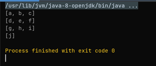 여기서는 JAVA8 버전에 포함된 stream 과 AtomicInteger 를 활용하여 파티셔닝하도록 유틸리티 메소드를 만들었습니다.