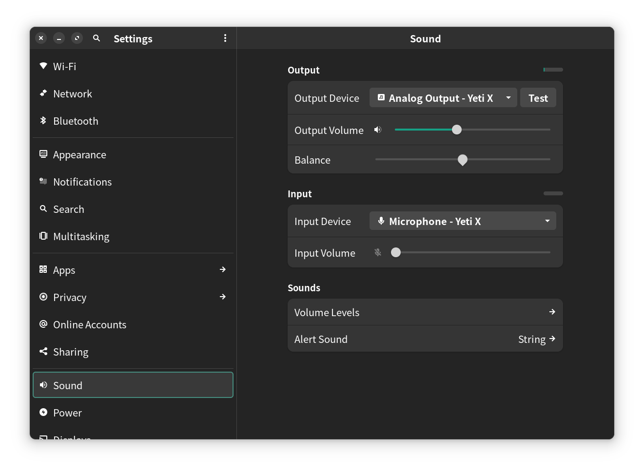 -- yeti 마이크의 아날로그 출력 단자로 기본 출력 변경 (헤드폰 사용)