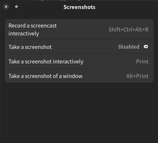 gnome 의 screenshots 기능이 내장되면서 shift-space 단축키가 gnome 내장 screenshot 앱에 바인딩되어 있는데 이를 해제합니다.